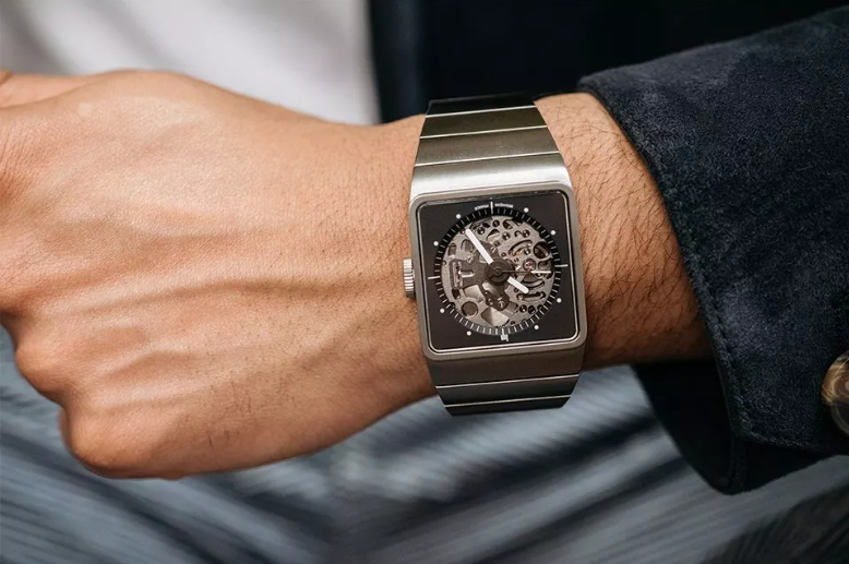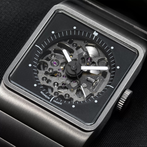Une première pour la maison LIP qui présente sa nouvelle BIG TV mouvement mécanique à remontage automatique sur un bracelet intégré au boîtier entièrement en titane. L’alliage lui confère des lignes sobres et épurées, tout en conservant le design du modèle original. Cette réédition très légère de 120 g, version squelette arbore un mouvement de couleur titane également, que vous pouvez également admirer grâce au fond de boîte transparent. Une montre extraordinaire qui saura capter tous les regards.