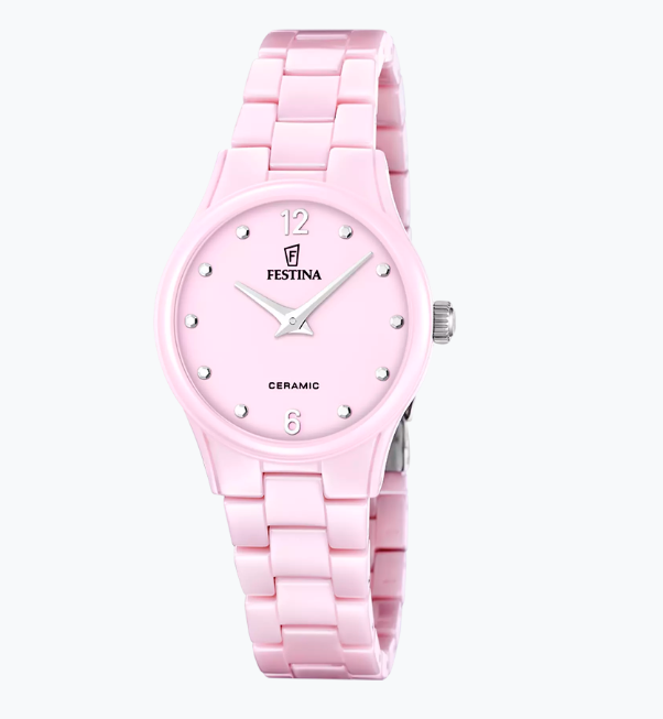La Festina Ceramic présente un design féminin et moderne, où la céramique offre une finition douce et élégante. Son verre minéral assure une bonne protection et une lisibilité optimale.