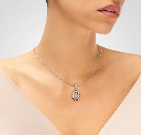 Ce design puise dans un univers riche en contrastes et en formes, transformé ici en pendentif pour femme expressif et contemporain. Le motif floral coloré s’inspire d’une destination emblématique au Maroc où la nature et la couleur occupent une place centrale.