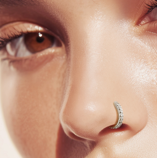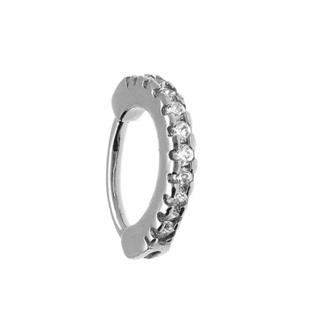 Piercing de nez en acier inoxydable, anneau serti d'oxydes blancs.