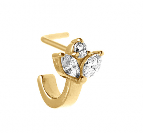 Piercing de nez en acier doré inoydable pétales oxydes blancs de forme navette.