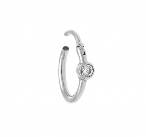 Piercing oreille Hélix, Tragus, Daith, Rook, anneau en acier inoxydable sertis d'un oxyde blanc.
