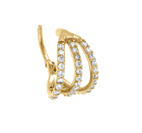 Piercing en acier doré, oreille Hélix 3 rangs sertis d'oxydes blancs.