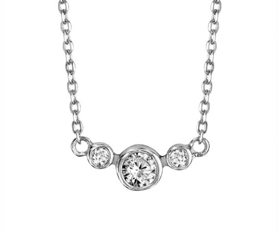 Collier ajustable 42+5cm, en argent rhodié 3 oxydes de zirconium blancs, sertis clos.
