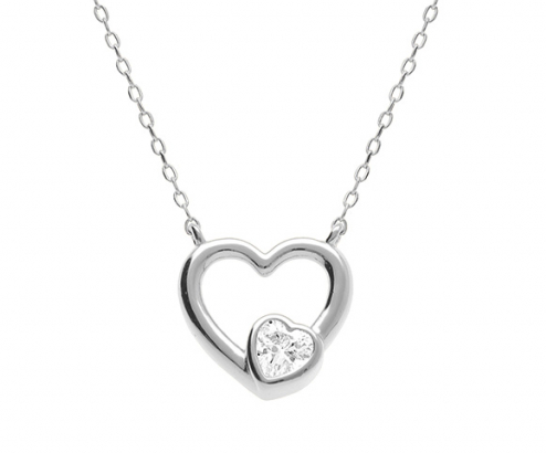COLLIER ARGENT RHODIÉ COEUR