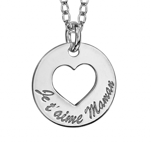 COLLIER ARGENT "JE T'AIME MAMAN" COEUR EVIDE