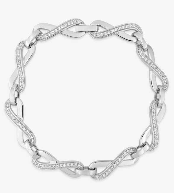 Bracelet argent rhodié chaîne infinie à demi serti oxydes de zirconium