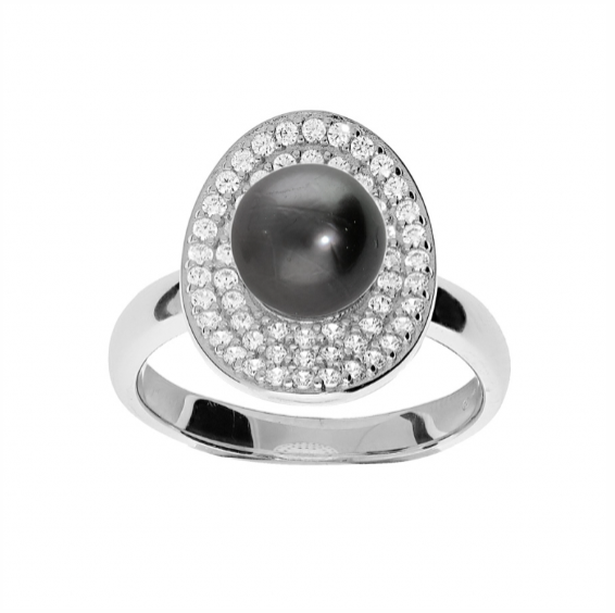 Bague perle de Tahiti et oxydes blancs