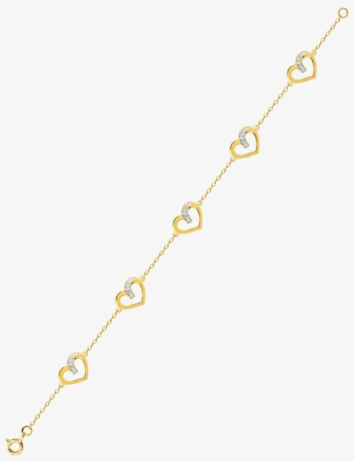 Bracelet plaqué or 5 coeurs